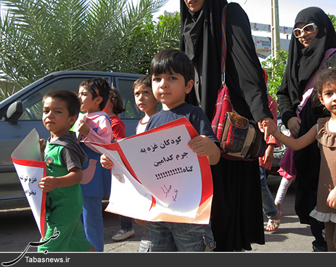 به گزارش خبر طبس، کودکان مهدهای کودک و کانون پرورش فکری کودکان شهر طبس صبح شنبه در راهپیمایی از مقابل فرمانداری تا مقابل باغ گلشن طبس با در دست داشتن و سر دادن شعارهایی، از جمله مرگ بر اسرائیل کودککش، مرگ بر آمریکاو اسرائیل کودک کش نابود باید گردد حمایت خود را از مردم بیدفاع و کودکان مظلوم غزه اعلام نموده و خواستار رسیدگی سازمان ملل به وضعیت کودکان غزه شدند.