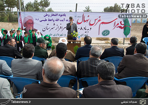 مراسم غرس نهال یادبود عالم ربانی آیت واعظ طبسی و ۲۰۸ شهید شهرستان طبس با حضور مردم و مسئولان صبح دوشنبه در شهر طبس برگزار شد.