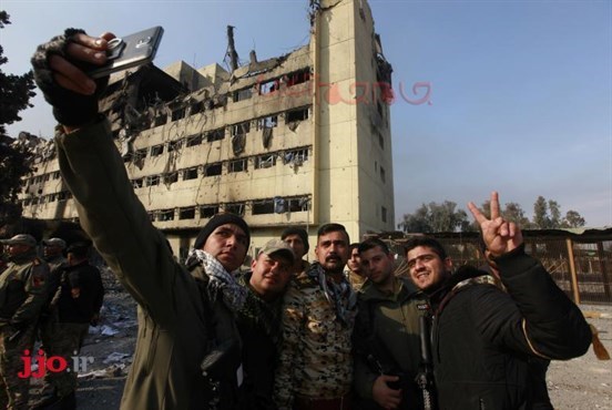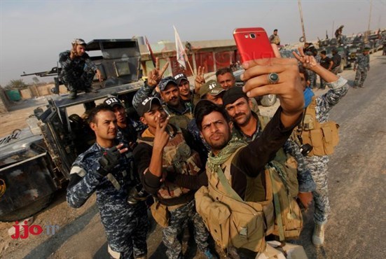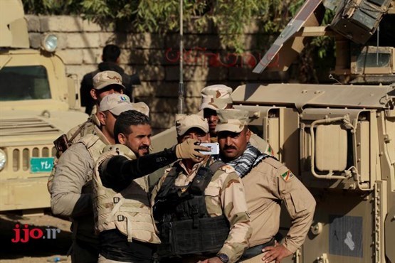 نیروهای نظامی عراقی در حال گرفتن عکس سلفی در غرب موصل