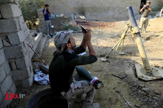 رزمندگان شیعه هنگام شلیک توپ به اهداف تروریست های داعش در نزدیکی فلوجه، عکس سلفی میگیرند